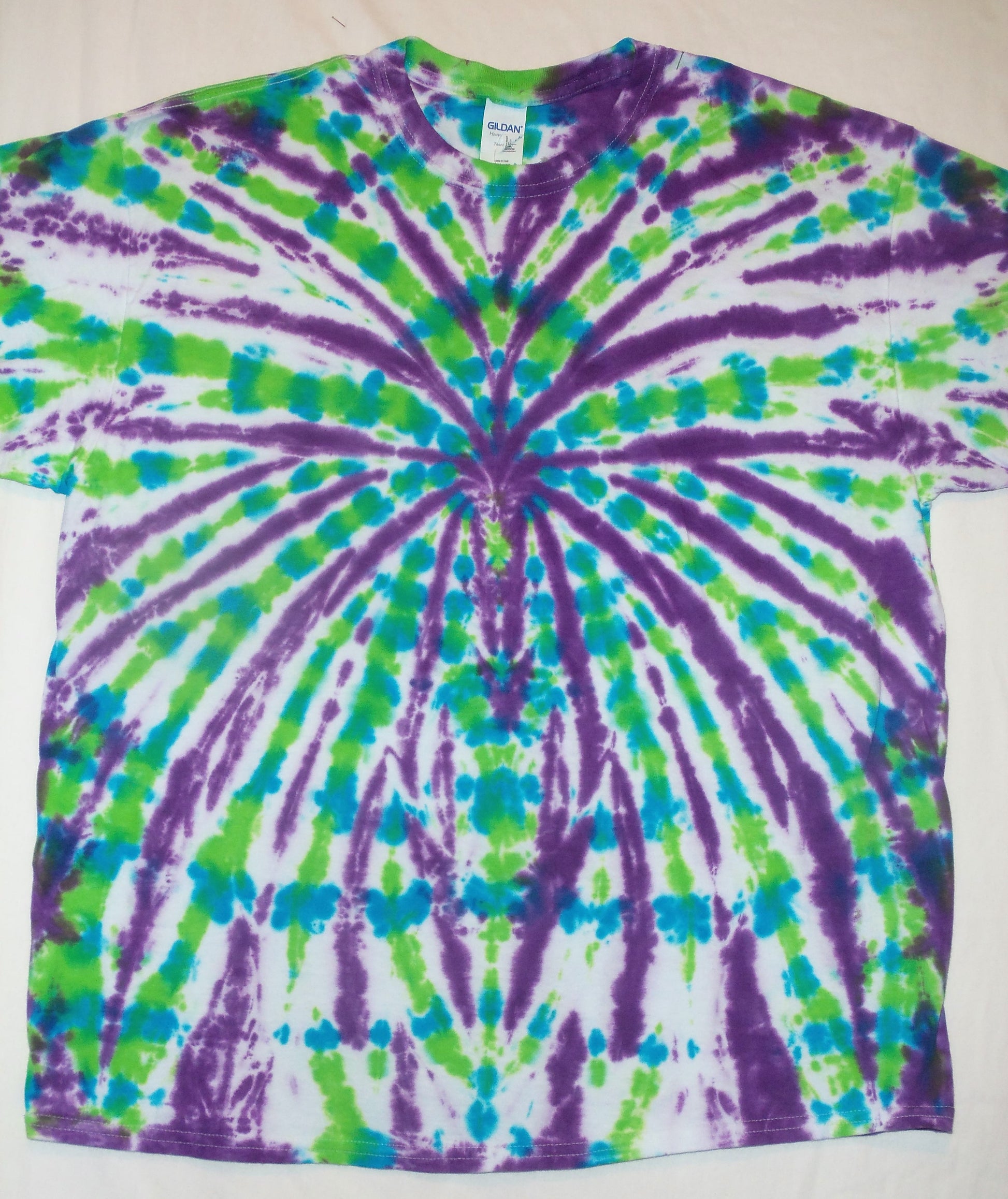 This is a spider pattern in lime green, turquoise, & purple. Available in toddler, youth, & adult sizes.