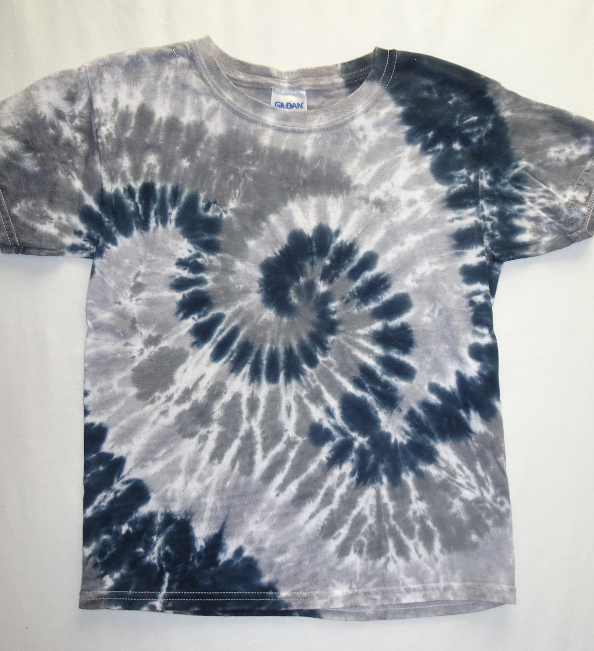 This is a twisted spiral pattern in light gray, dark gray, & black. Available in youth & adult sizes.