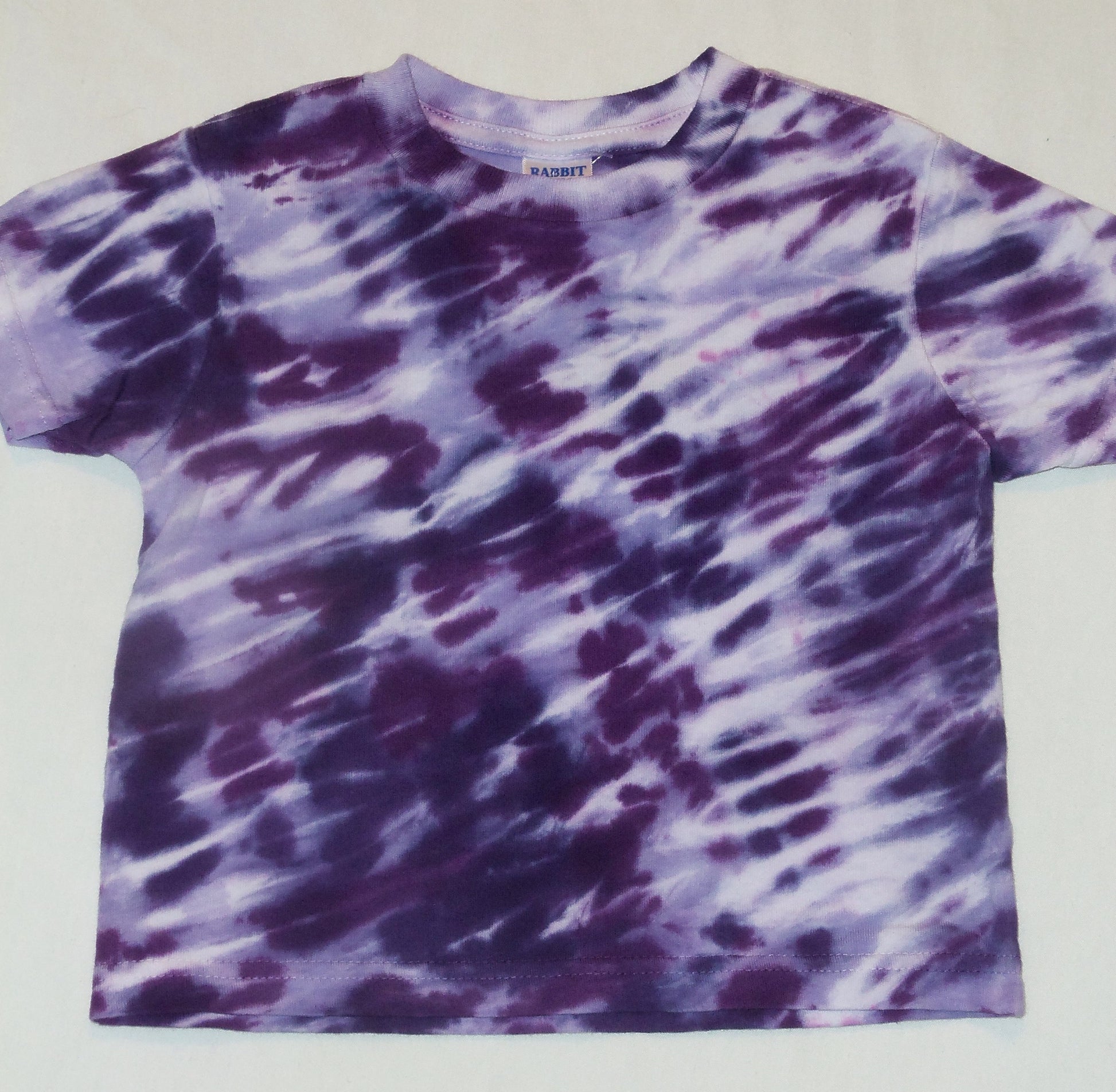 This is a diagonal shibori pattern in light, medium, & dark purple. Available in infant one pieces with matching socks, toddlers, youth, & adult sizes.