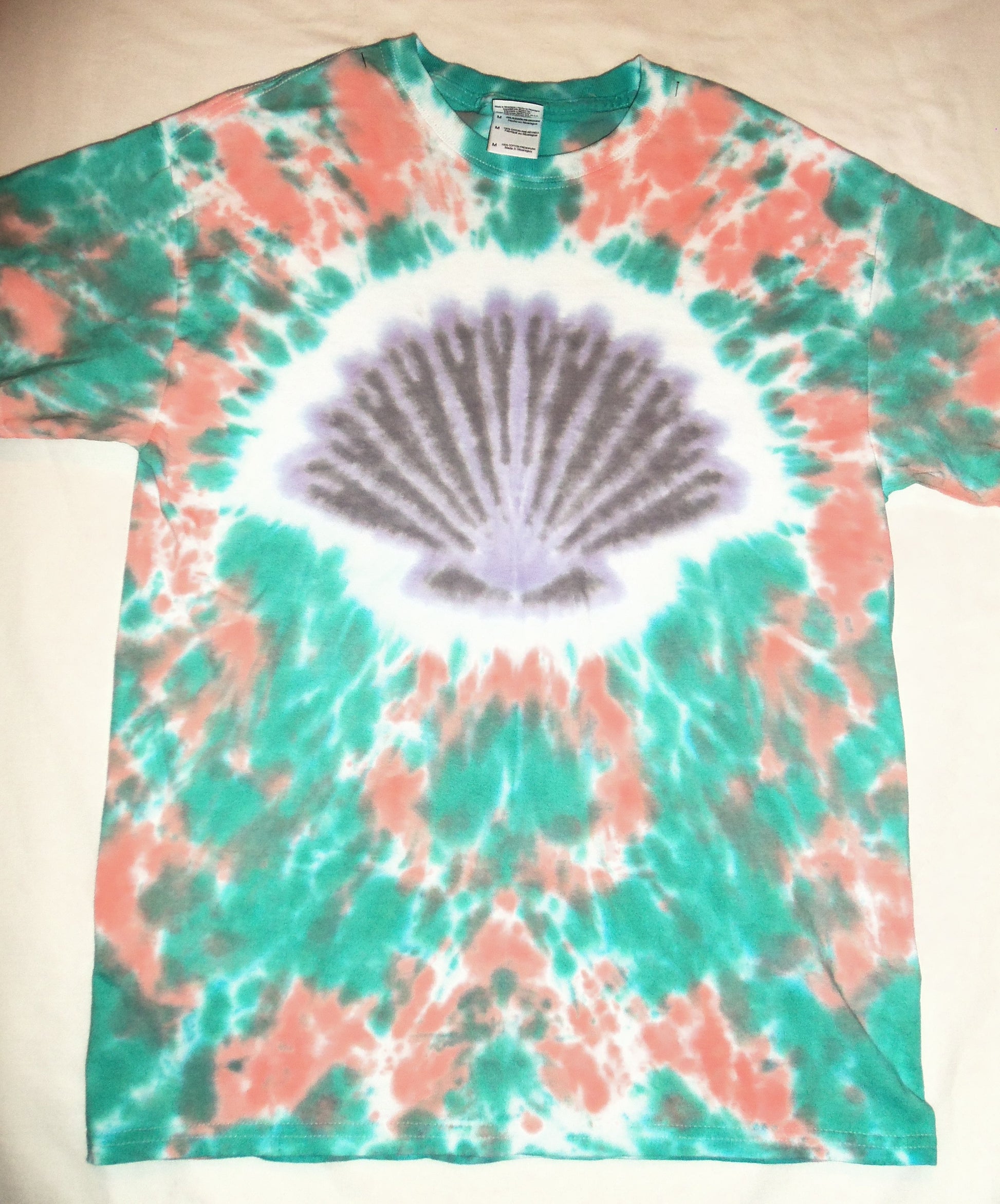 This is our seashell design & is available in two choices. One has a dark purple outlined shell with a light blue & tan background & the other has a light purple shell & an aqua & peach background. Available in youth & adult sizes.