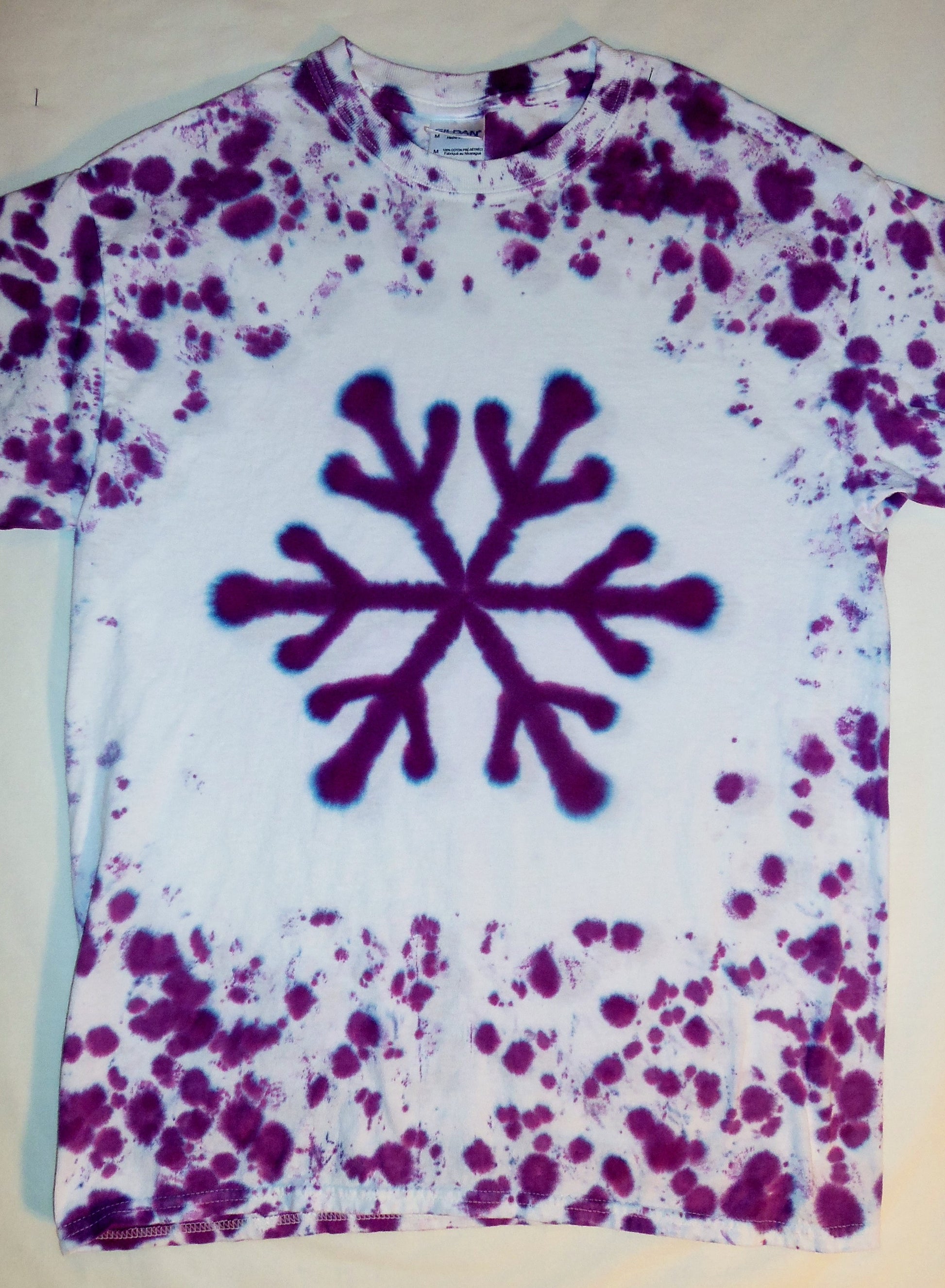 This is our snowflake design in either a blues color scheme or in purple (has a blue bleed effect.) Available in youth & adult sizes.